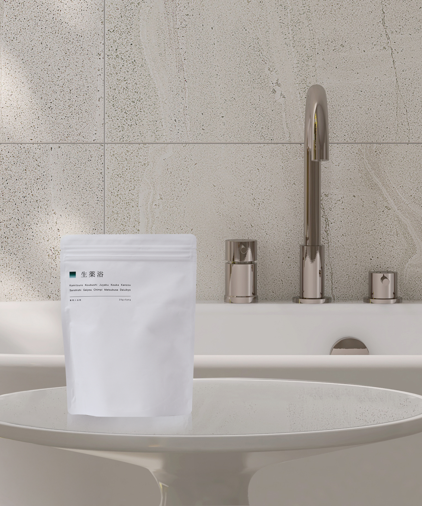 生薬の成分がじんわりとお湯に溶け出し、血行を促進しながら、疲労・肩こり・冷え・肌荒れ・筋肉痛などに穏やかに働きかけます。